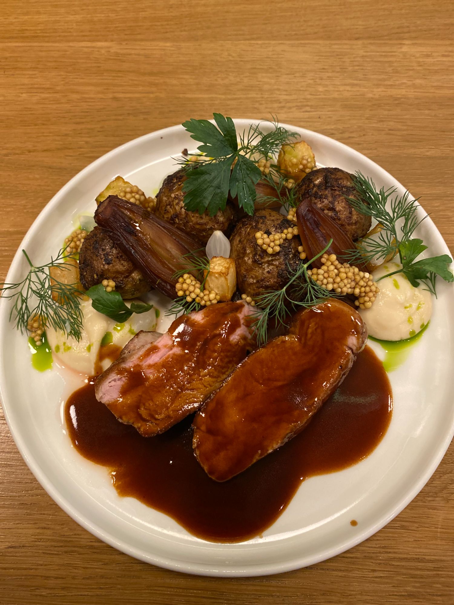 Boczek długo pieczony ok.160g + sos demi glace 100ml